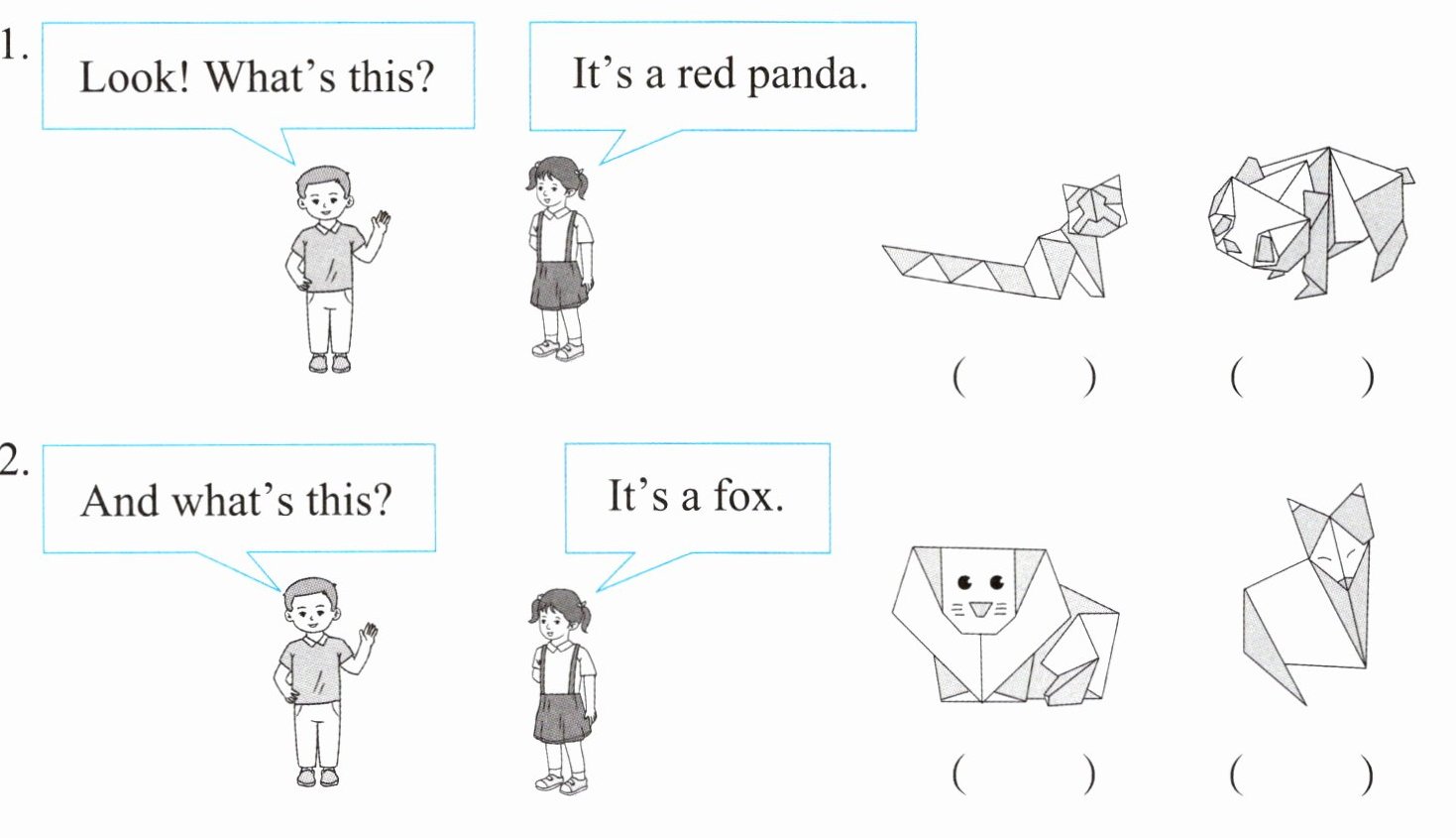 二、同学们在玩折纸游戏,请根据对话内容,选出正确的图片画√。