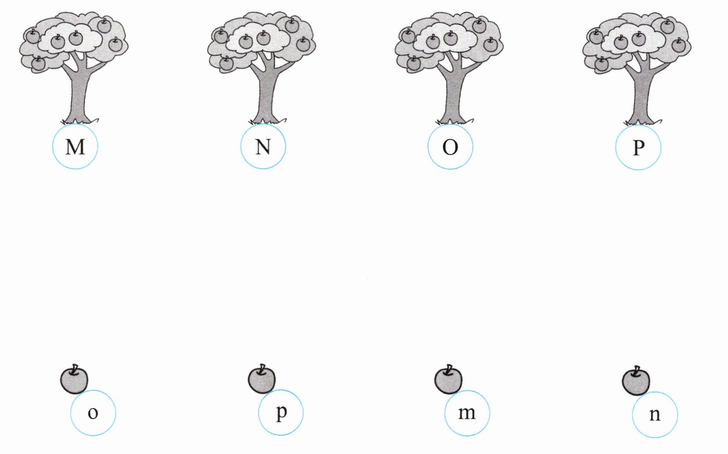 一、你能找出以下苹果是从哪棵果树上摘下来的吗?将大写字母与对应的小写字母连一连。