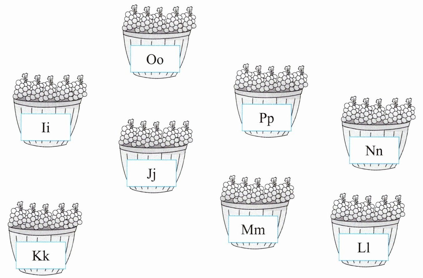 二、果农用字母标记葡萄采摘顺序,请你帮忙按顺序连一连。
