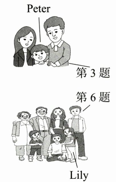 六、两位小朋友在介绍家庭情况,根据图片,判断他们的介绍是否正确,正确的写 “T” ,错误的写 “F” 。