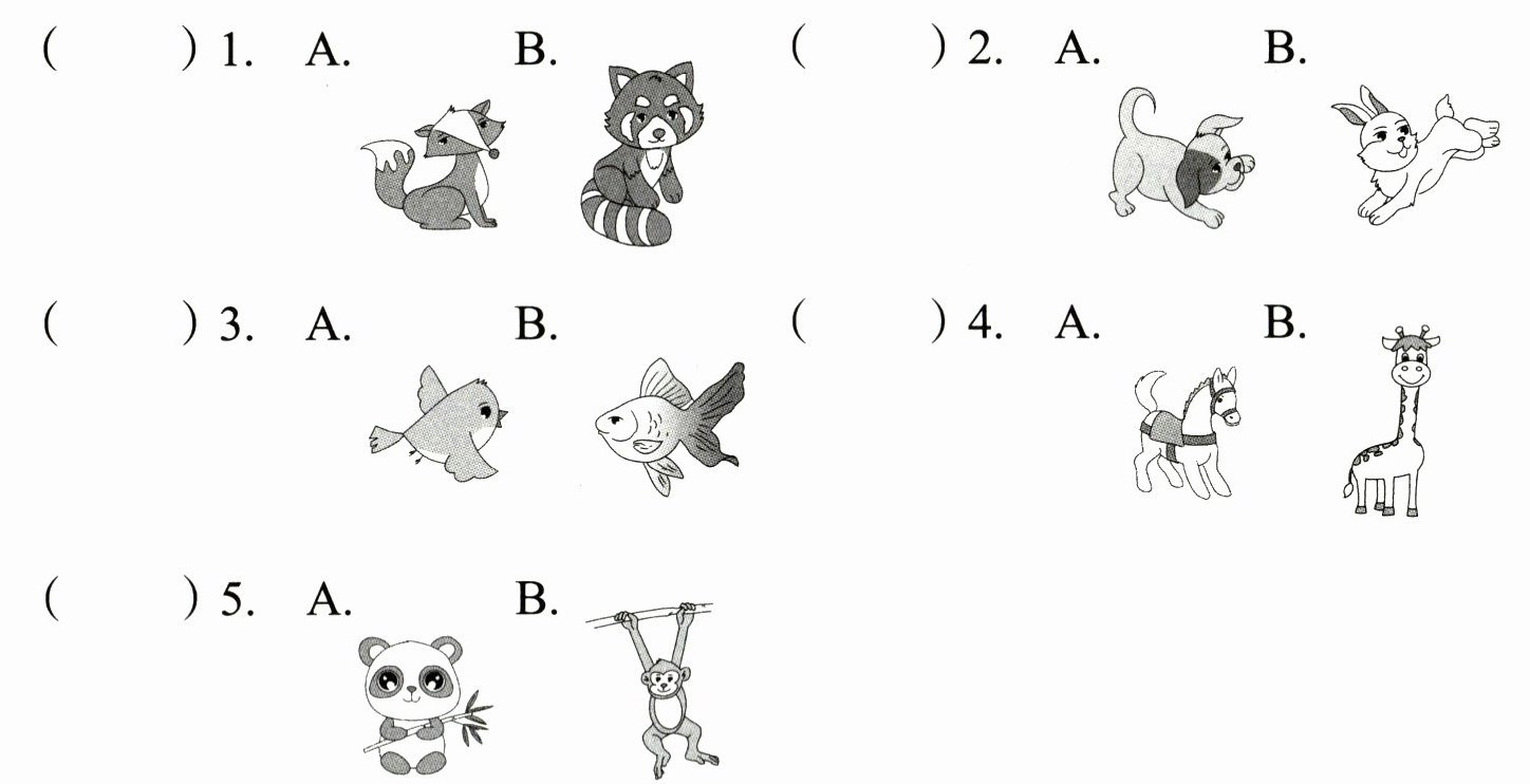 一、听录音,结合图片,圈出你所听到的单词的首字母。