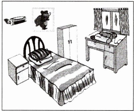 十二、根据所给图片,用 There be 句型帮 Zoom 描述一下它的卧室