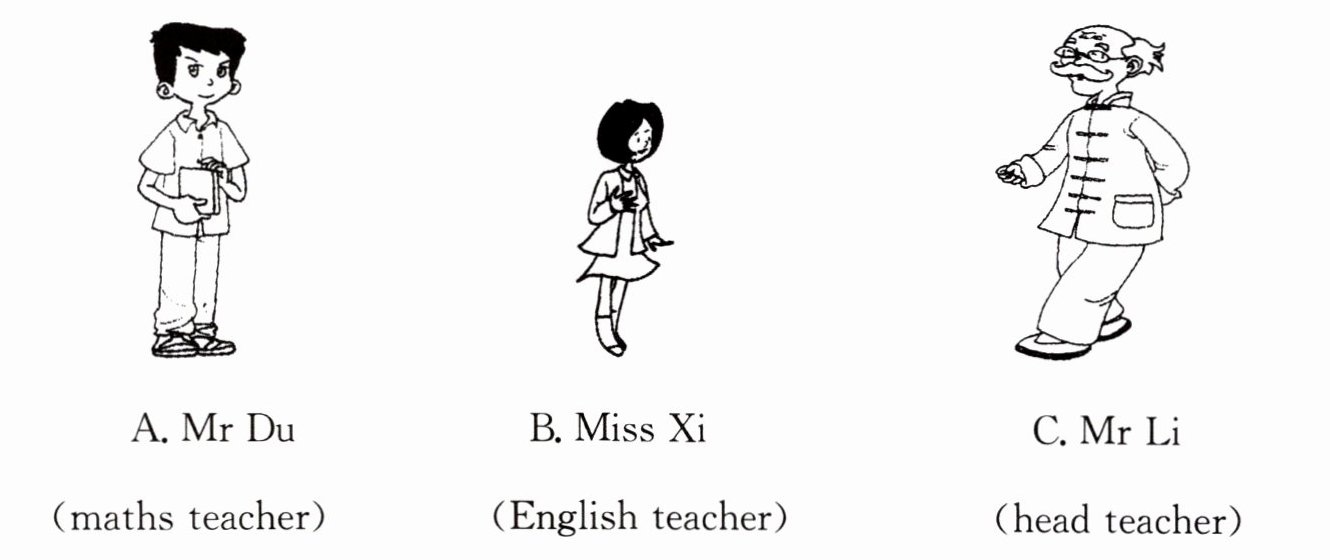 1. Good morning 2. three 3. maths teacher 4. tall 5. Miss Xi 6. short 7. old