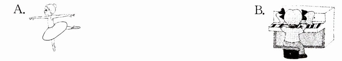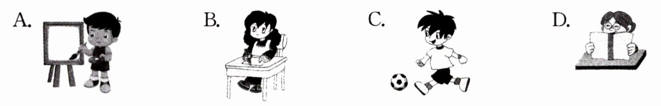 1.D/read 2.C/play 3.B/do 4.A/draw