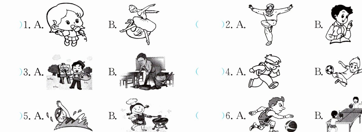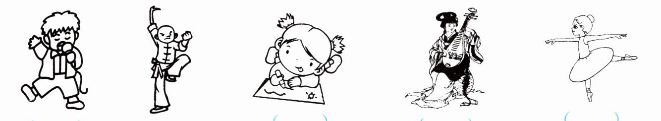 )5. A. do kung fu B. draw cartoons C. play ping - pong D. have dinner