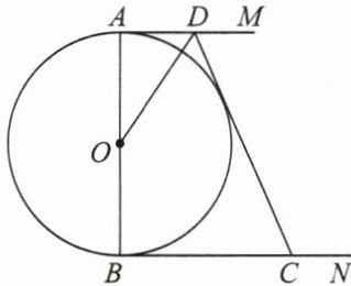 如图,$AM$,$BN是\odot O$的切线,切点为$A$,$B$,$AM// BN$,点$D$,$C分别是AM$,$BN$上的点,$OD平分\angle ADC$,$\odot O的半径是6$,设$AD = x$,$BC = y$。