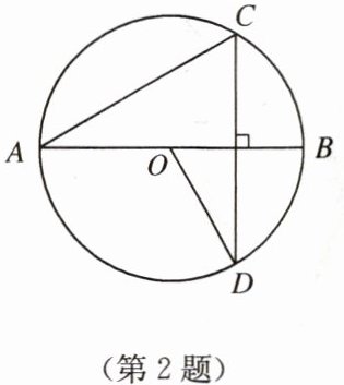 2. 如图,$ AB $ 是 $ \odot O $ 的直径,$ CD $ 是 $ \odot O $ 的一条弦,$ AB \perp CD $,连接 $ AC $,$ OD $。