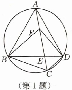 1. 如图,四边形 $ ABCD $ 内接于圆,对角线 $ AC $ 与 $ BD $ 相交于点 $ E $,点 $ F $ 在 $ AC $ 上,$ AB = AD $,$ \angle BFC = \angle BAD = 2\angle DFC $。