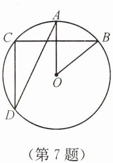 7. 如图,BC 是⊙O 的一条弦,OA⊥BC,交⊙O 于一点 A,点 D 在⊙O 上,∠ADC = 25°,则∠OBC 的度数是______°。