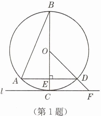 1. 如图,BC 为⊙O 的直径,弦 AD⊥BC 于点 E,直线 l 切⊙O 于点 C,延长 OD 交 l 于点 F。若 AE = 2,∠ABC = 22.5°,则 CF 的长度为( )