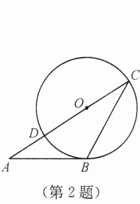 2. 如图,△ABC 的边 AC 与⊙O 相交于 C,D 两点,且经过圆心 O,边 AB 与⊙O 相切,切点为 B。若∠A = 30°,则∠C 的度数是( )