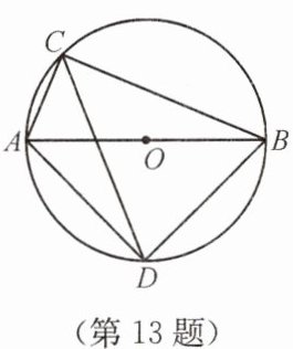 13. (7 分)如图,⊙O 的直径 AB 长为 6,弦 AC 长为 2,∠ACB 的平分线交⊙O 于点 D,求四边形 ADBC 的面积。