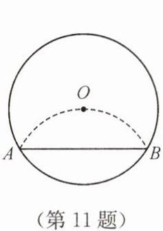 11. 如图,将半径为 2 cm 的圆形纸片折叠后,圆弧恰好经过圆心 O,则劣弧$\overset{\frown}{AB}$的长为______cm。