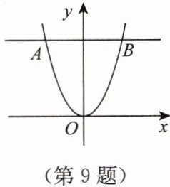 9. 如图,已知点 $ A(-2, 4) $ 在抛物线 $ y = ax^{2}(a \neq 0) $ 上,过点 $ A $ 且平行于 $ x $ 轴的直线交抛物线于点 $ B $。