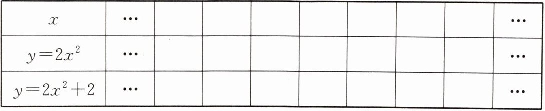 (注:在坐标系中描出点$(-2,8),(-1,2),(0,0),(1,2),(2,8)$并连线得$y=2x^2$;描出点$(-2,10),(-1,4),(0,2),(1,4),(2,10)$并连线得$y=2x^2+2$,图象均为开口向上的抛物线。)