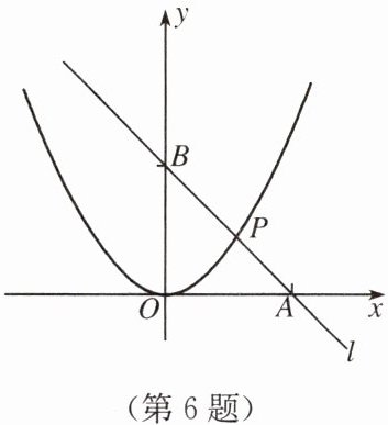 6. 如图,已知直线$l过A(4,0)和B(0,4)$两点,它与二次函数$y = ax^2的图象在第一象限内交于点P$,若$\triangle AOP$的面积为4。