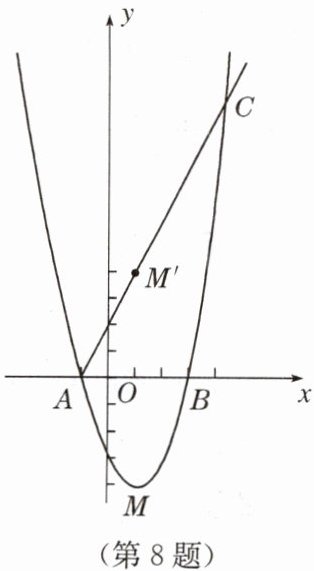 8. 如图,抛物线 $ y = x^{2} + bx + c $ 与 $ x $ 轴相交于 $ A(-1,0) $,$ B(3,0) $ 两点,顶点 $ M $ 关于 $ x $ 轴的对称点是 $ M' $。