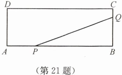 21. (8 分)如图,矩形 $ ABCD $ 的两边长 $ AB = 18 \, cm $,$ AD = 4 \, cm $,点 $ P $,$ Q $ 分别从 $ A $,$ B $ 同时出发,$ P $ 在边 $ AB $ 上沿 $ AB $ 方向以 $ 2 \, cm/s $ 的速度匀速运动,$ Q $ 在边 $ BC $ 上沿 $ BC $ 方向以 $ 1 \, cm/s $ 的速度匀速运动。设运动时间为 $ x(s) $,$ \triangle PBQ $ 的面积为 $ y(cm^{2}) $。
