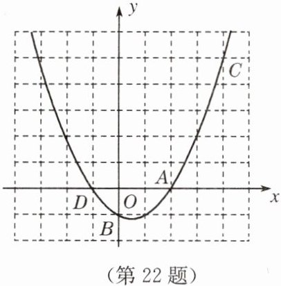 22. (8 分)已知二次函数 $ y = ax^{2} + bx + c $ 的图象过 $ A(2, 0) $,$ B(0, -1) $ 和 $ C(4, 5) $ 三点。