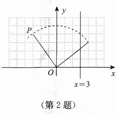 2. 如图,电子光点P绕着点O做圆周运动,直线x = 3的右侧为危险区,光点初始位置在点(-3,4)处,顺时针旋转90°后电子光点P____危险区.(填“进入”或“不进入”)