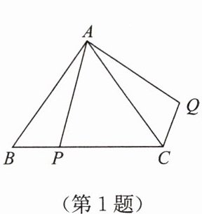 1. 如图,在△ABC中,AB = AC,点P在边BC上. △ACQ由△ABP旋转得到,下列说法错误的是( )