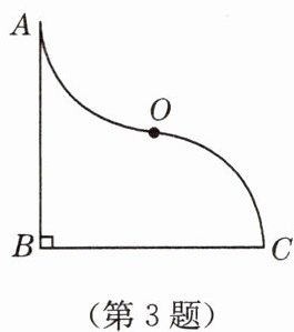 3. 如图,$AB\perp BC$,$AB= BC= 2\ cm$,$\overset{\frown}{OA}与\overset{\frown}{OC}关于点O$成中心对称,则$AB,BC,\overset{\frown}{CO},\overset{\frown}{OA}$所围成的图形的面积是______$cm^2$.