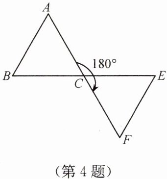 4. 如图,在$\triangle ABC$中,$AB= AC$,若将$\triangle ABC绕点C顺时针旋转180^{\circ}得到\triangle FEC$.