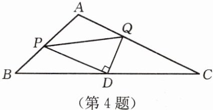 4. 如图,在 $\triangle ABC$ 中,点 $D$ 是 $BC$ 的中点,点 $P$ 是 $AB$ 边上的一点,点 $Q$ 是 $AC$ 边上的一点,且 $PD\perp DQ$。求证:$BP + CQ> PQ$。