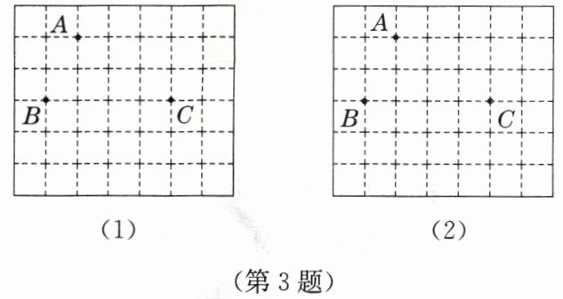3. 图(1)、图(2)均为 $7×6$ 的正方形网格,点 $A$,$B$,$C$ 在格点上。
