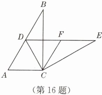 16. (7 分)如图,在 $ Rt\triangle ABC $ 中,$ \angle ACB = 90^{\circ} $,$ \angle B = 30^{\circ} $,将 $ \triangle ABC $ 绕点 $ C $ 按顺时针方向旋转 $ n $ 度后,得到 $ \triangle DEC $,点 $ D $ 刚好落在 $ AB $ 边上.