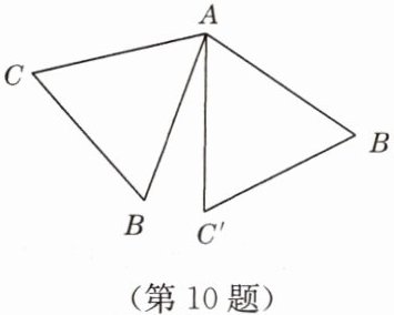 10. 如图,$ \triangle ABC $ 按逆时针方向旋转了 $ 80^{\circ} $后成为 $ \triangle AB'C' $,已知 $ \angle B = 60^{\circ} $,$ \angle C' = 55^{\circ} $,则 $ \angle BAC' = $ $ ^{\circ} $.