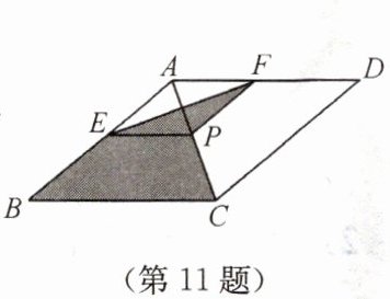 11. 如图,菱形 $ ABCD $ 的对角线的长分别为 $ 2 $ 和 $ 5 $,$ P $ 是对角线 $ AC $ 上一点,且 $ PE // BC $ 交 $ AB $ 于 $ E $,$ PF // CD $ 交 $ AD $ 于 $ F $,则阴影部分的面积是 $ $ $ $.