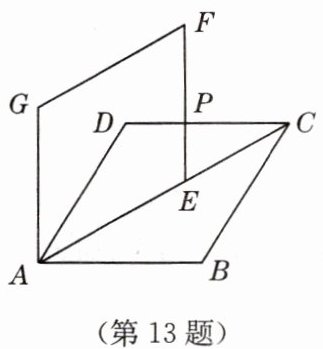 13. 如图,在菱形 $ ABCD $ 中,$ AB = 2 $,$ \angle BAD = 60^{\circ} $,将菱形 $ ABCD $ 绕点 $ A $ 按逆时针方向旋转,对应得到菱形 $ AEFG $,点 $ E $ 在 $ AC $ 上,$ EF $ 与 $ CD $ 交于点 $ P $,则 $ DP $ 的长是 $ $ $ $.