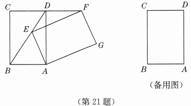 21. (12 分)将矩形 $ ABCD $ 绕点 $ A $ 顺时针旋转 $ \alpha (0^{\circ} < \alpha < 360^{\circ}) $,得到矩形 $ AEFG $.