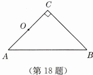 18. (8 分)在等腰直角 $ \triangle ABC $ 中,$ \angle C = 90^{\circ} $,$ BC = 2 cm $. 如果以 $ AC $ 的中点 $ O $ 为旋转中心,将这个三角形旋转 $ 180^{\circ} $,点 $ B $ 落在点 $ B' $ 处,求 $ BB' $ 的长度.