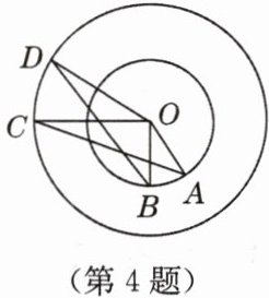 4. 如图,点$A$,$B和C$,$D$分别在两个同心圆上,且$\angle AOB = \angle COD$,求证:$\angle C = \angle D$.