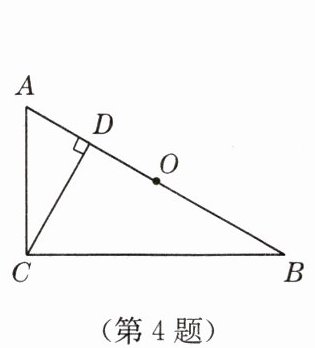 4. 如图,在$\triangle ABC$中,$\angle ACB = 90^{\circ}$,$AB = 10$,$BC = 8$,$CD\perp AB于点D$,$O为AB$的中点。