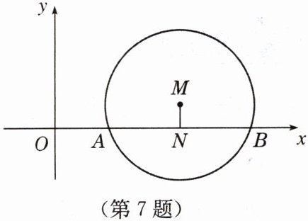 7. 如图,在平面直角坐标系中,点$M$在第一象限内,$MN\perp x轴于点N$,$MN = 1$,$\odot M与x轴交于A(2,0)$,$B(6,0)$两点。