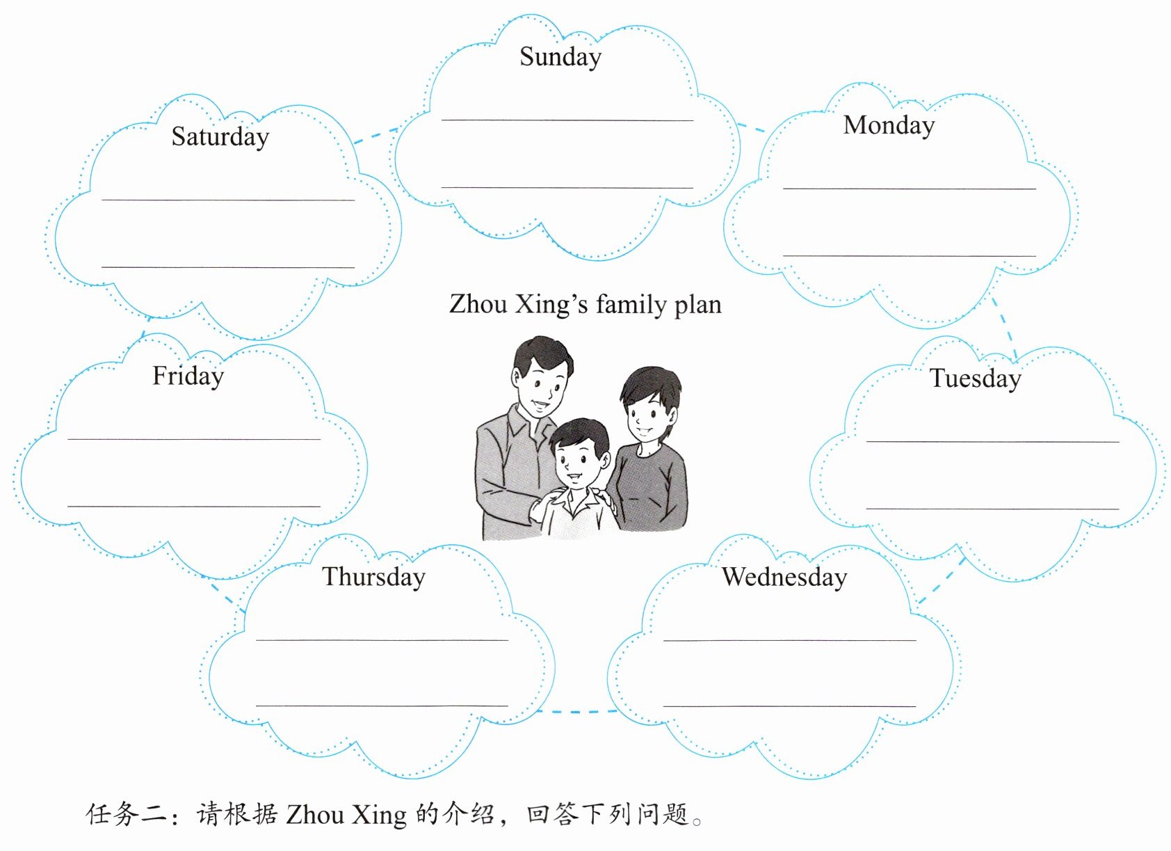 任务一:阅读 Zhou Xing 的家庭计划,将下面的思维导图补充完整。