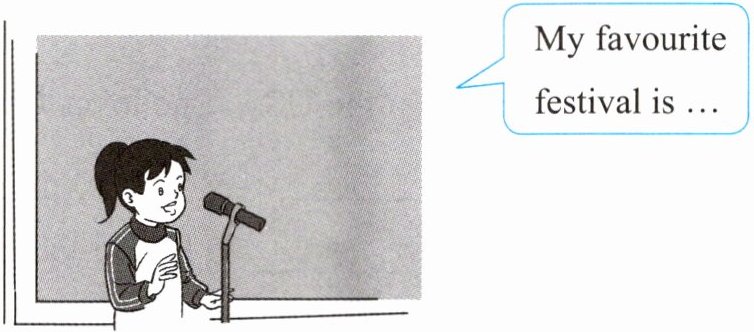 五、Think and say. 班级计划举办一个关于传统节日的演讲活动,主题为“My favourite festival”。你最喜欢的节日是哪个呢?请想一想,为同学们介绍一下。