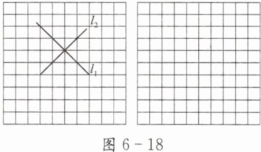 如图6-18,检验方格纸上的直线$l_1$,$l_2$是否互相垂直.你能只用直尺在方格纸上再画出两条互相垂直的直线吗? 试试看.