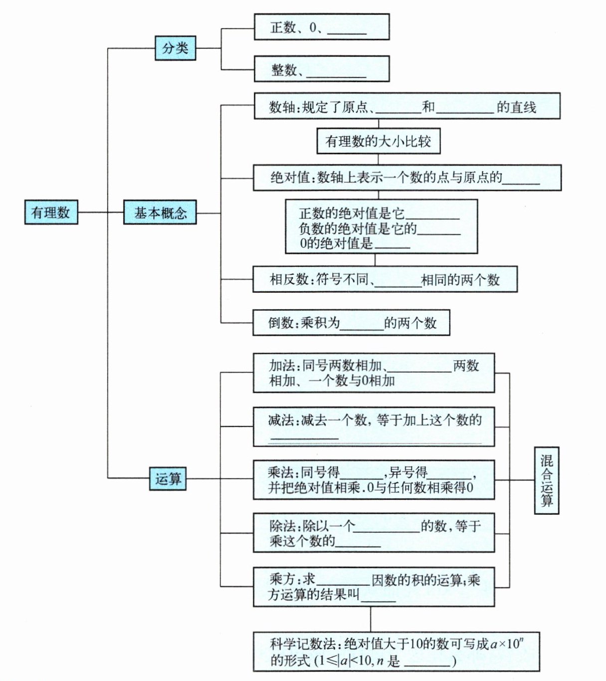 8. 加法:同号两数相加、**异号**两数相加、一个数与$0$相加;
