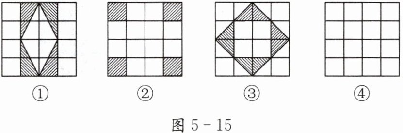 (1)如图 5-15,观察图①②③中阴影部分的图案,写出这三个图案都具有的两个公共特征.
