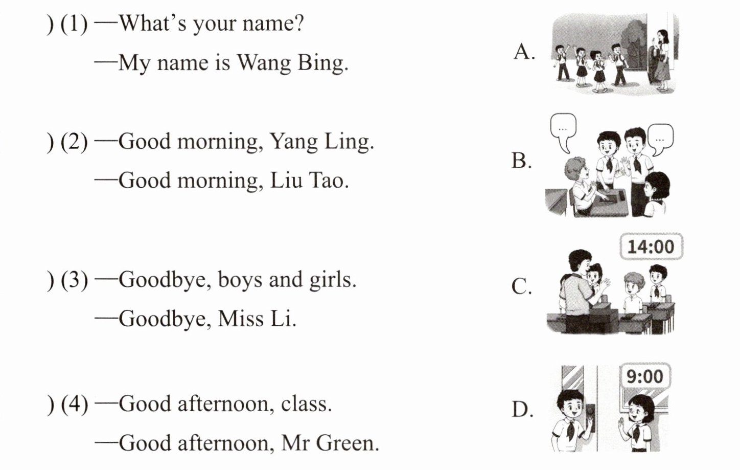 ( )(1)当你早上遇到同学,你会和他打招呼说: