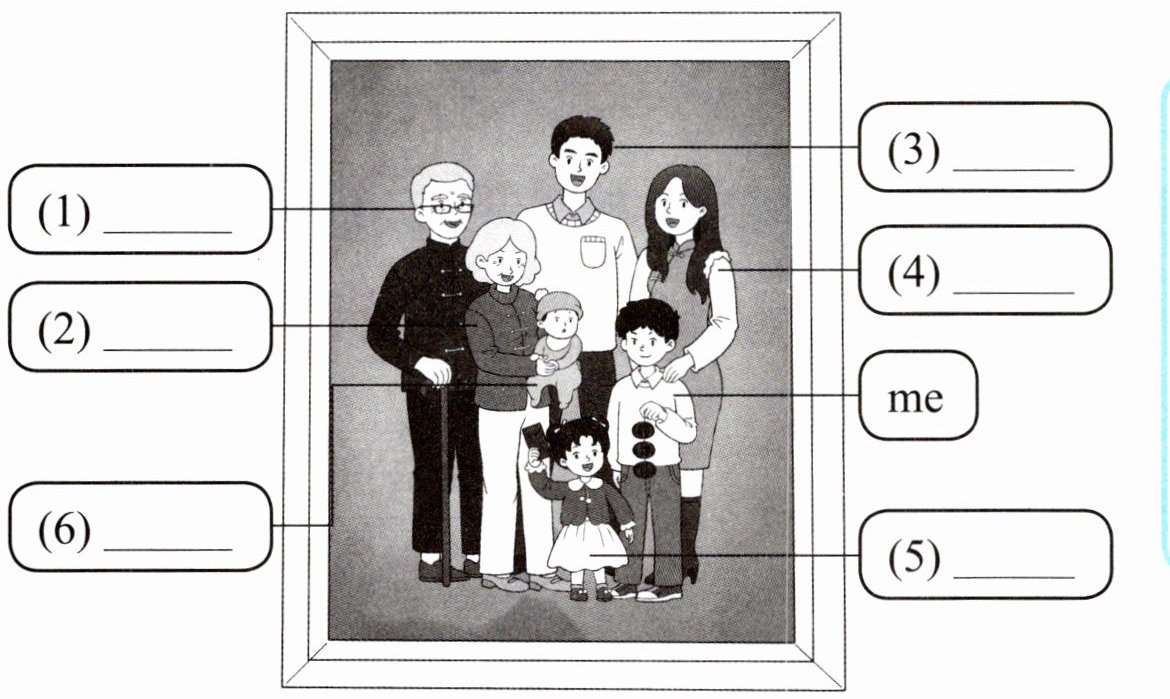 ( ) (5) I have ______ happy family. I ______ my family.