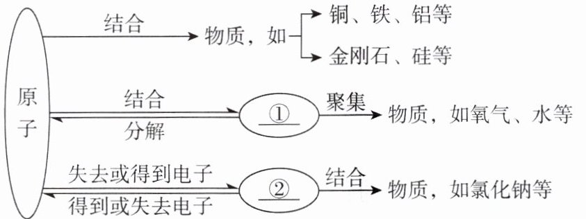 10. 下图是微观粒子与其构成物质之间的关系图,回答下列问题。