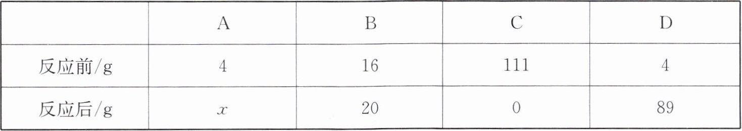 |反应后/g|x|20|0|89|