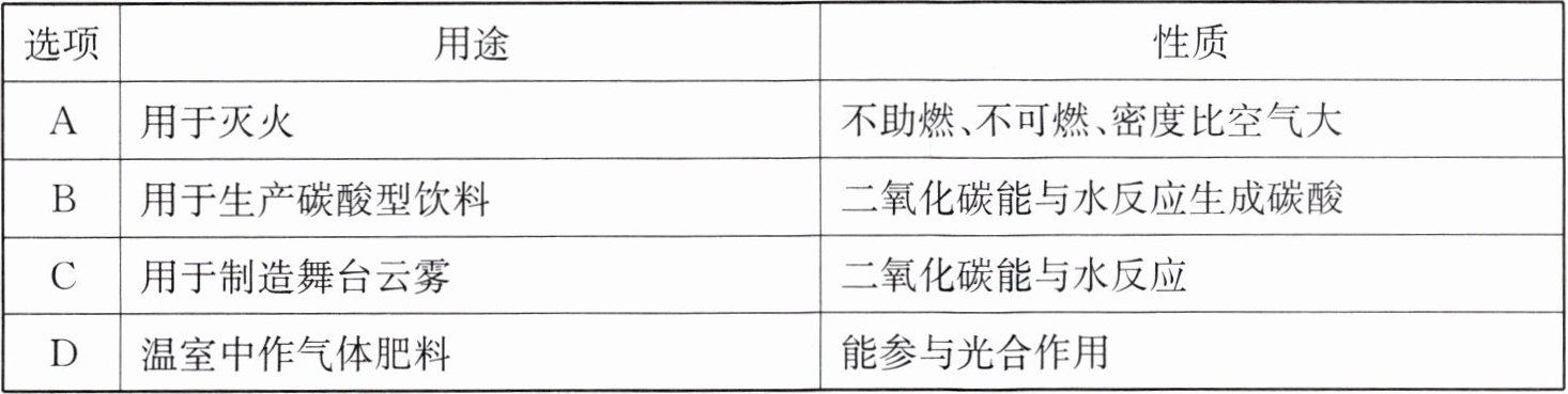 3. 下列二氧化碳的用途与其依据的性质不相符的是(
