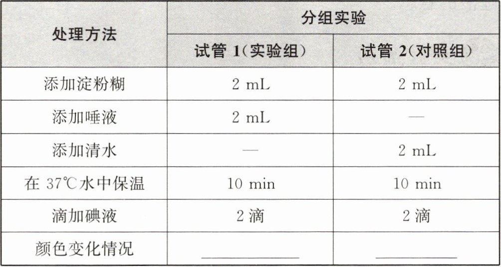 1. 分小组,每位同学取一小块______细细咀嚼,体验咀嚼过程中______的变化。根据______的变化,提出问题:淀粉在口腔中是否发生了______消化?