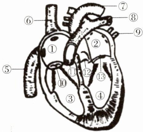 8. 下页图是人体心脏结构示意图,请据图回答下列问题。